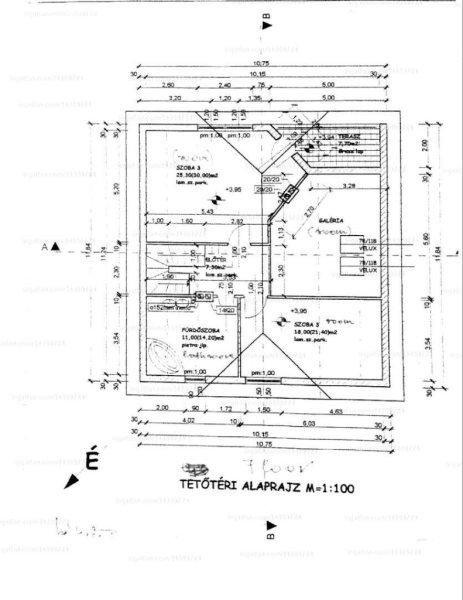 mögött): 13,0 és 8 nm)Emelet:szobák: 30,0; 21 nm és 25 nmFürdőszoba: 8,9