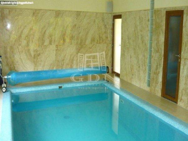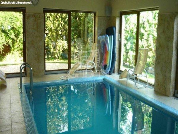 beltéri medence, 6 fős finn szauna plusz zuhanykabin is van. A medence fala