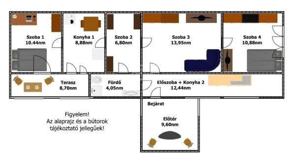 alapterülete 67,44nm, melyben található:- 4 szoba,- 1 fürdő,- 1 konyha,- 1