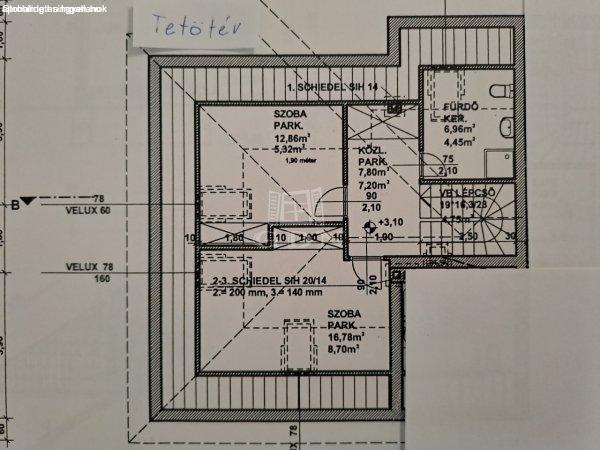 saját fürdőszobás háló található.Az emeleten további két szoba (12,8 és 16,7