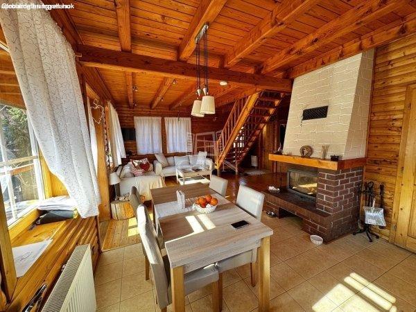 állapotban lévő, könnyűszerkezetes, rönkház jellegű családi házat. A ház