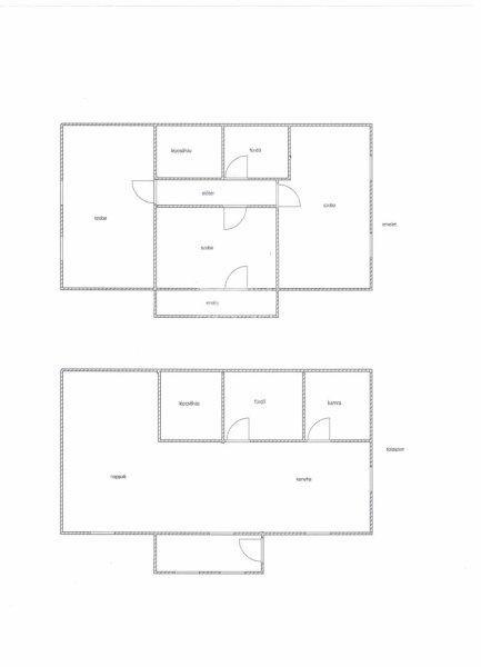falazattal.Földszint és tetőtér kialakítású, nappali + 3 szoba, 2 fürdőszoba,