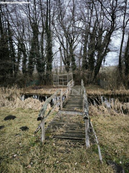 ingatlan erdő mellett, patak és tó közelében található, átmenő forgalomtól