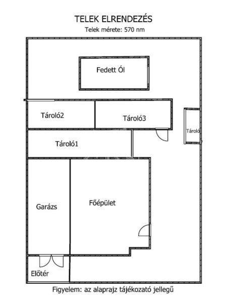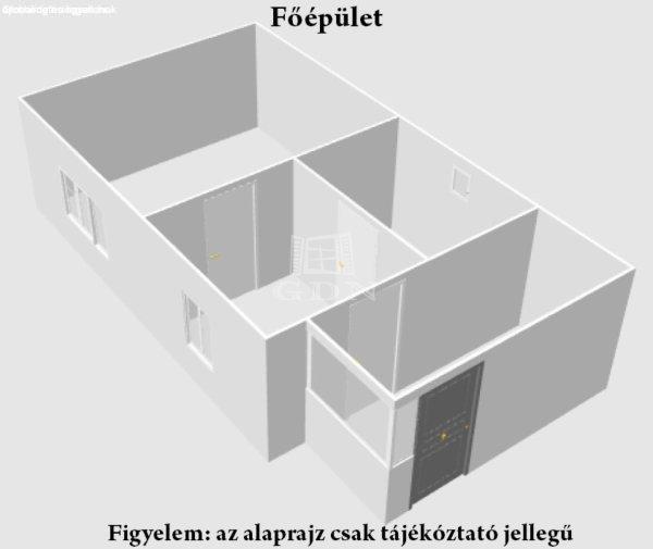 nm. A főépületben található: - 2 szoba,- előszoba,- fürdőszoba.A kertes ház
