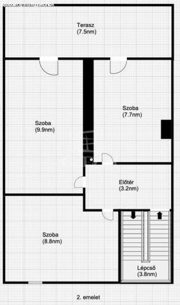 méretével egyező terasz hozható létre ezen a szinten is.Belső terek jelenleg az