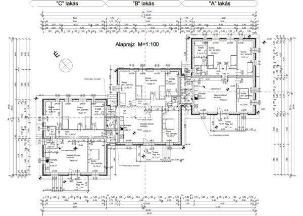 lakást.A-lakás 99,74 nm, 554 m2-es telekrésszel, B-lakás 98,68 nm 306 m2-es