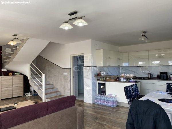 újszerű, önálló, kétszintes családiház fedett terasszal, 140m2-es tároló