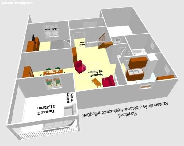 melyben található:- 4 szoba,- 2 fürdőszoba,- különálló WC,- 2 nappali,- 2