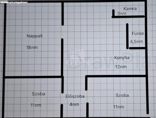Nappali 18m2 és 2 félszoba ami 11-11nm2. Tartozik hozzá egy 3 négyzetméteres