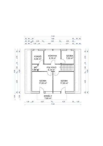 szélfogó(4,4m2)Emeleten:-közlekedő(6,34m2), 3 szoba(17m2, 17m2, 7,02m2),
