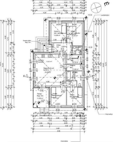 tároló 5,10 nm,- konyha 5,46 nm,- nappali-étkező 28,98 nm,- kamra 3,60 nm,-