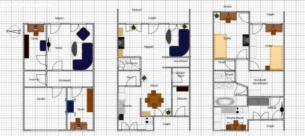 spájz, zuhanyzó, nappali, loggia -Emelet: 2 hálószoba, nappali, konyha-étkező,