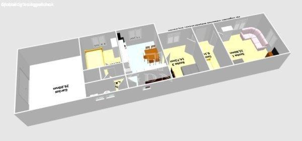 melyben található:- 4 szoba,- fürdőszoba,- konyha + nappali- spájz,- előszoba-