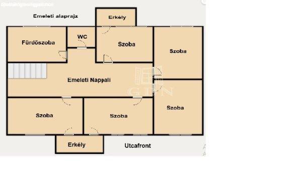 szint): nappali + 7 szoba + 2 fürdőszoba + 3 mosdó- Téglaépítésű- Erkély: kb. 6