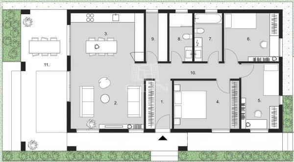 részében. A 97 négyzetméteres lakóterület négy szobával rendelkezik, ideális