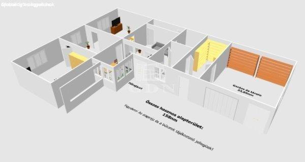 ház bruttó alapterülete: 220nm.Az épület hasznos alapterülete 158nm melyben