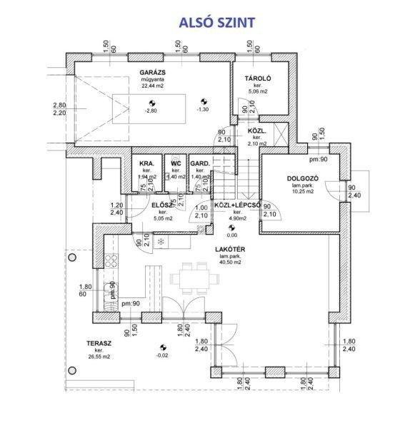 helyiségMűszaki tartalma:- 30 cm falazat, 15 cm dryvit szigeteléssel- 25 cm