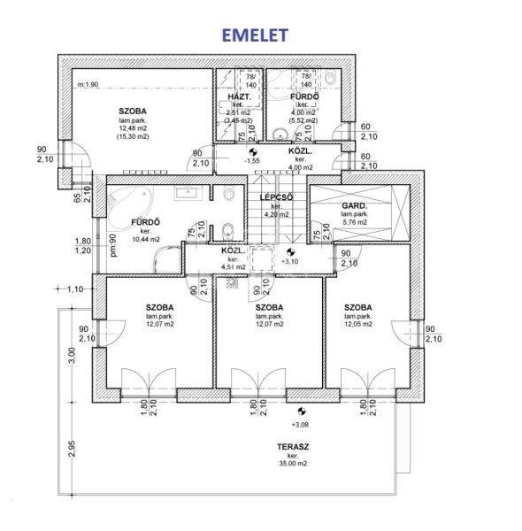 kapcsolattal,- 5 szoba- 2 fürdőszoba- 3 WC- gardrób szoba- háztartási