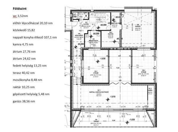 nm), közlekedő (17 nm), gépészeti helyiség 5,7 nm), tároló (10,3 nm),