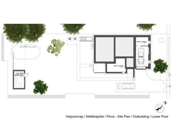 nm-s tároló.A terasz alatt egy alacsonyabb belmagasságú, 15 nm tároló