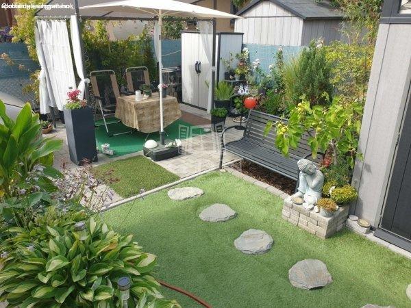 nm-es zárt lakóparki házat.A kert 118 nm-es gyönyörűen karbantartott.Az ingatlan