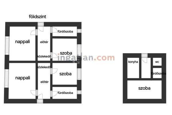 konyhás nappalival, 3 szobával, fürdőszoba+wc-vel, külön wc-vel, és 2 kisebb
