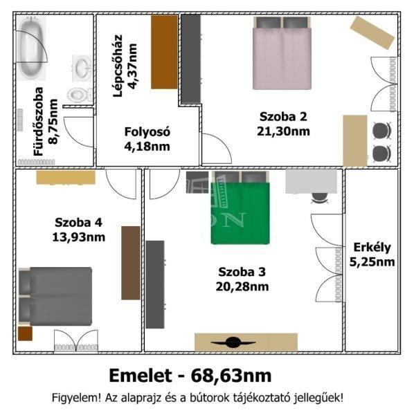 melyben található:- 4 szoba,- 2 fürdőszoba,- nappali,- konyha,- spájz,- 2