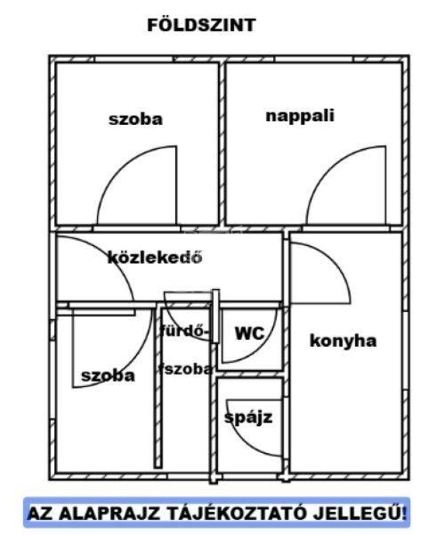 földszint: 2 szoba, nappali, konyha, spájz, fürdőszoba, WC, közlekedő,