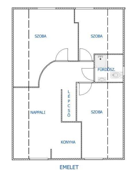 2 szoba, kamra, fürdőszoba, WC, lépcsőház, kazánház - Emelet (1996-ban épült
