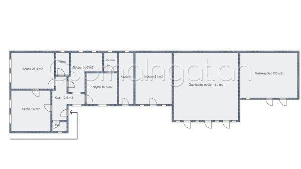 fűthető gazdasági épület (152 m2)- melléképület (105 m2)- pince- garázsTELEK-