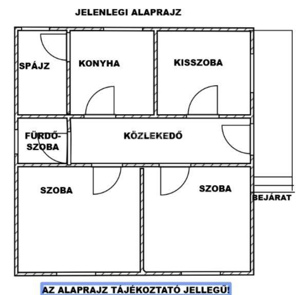 konyha, valamint kisszoba közötti falak bonthatók, válaszfalak, tehát ezek
