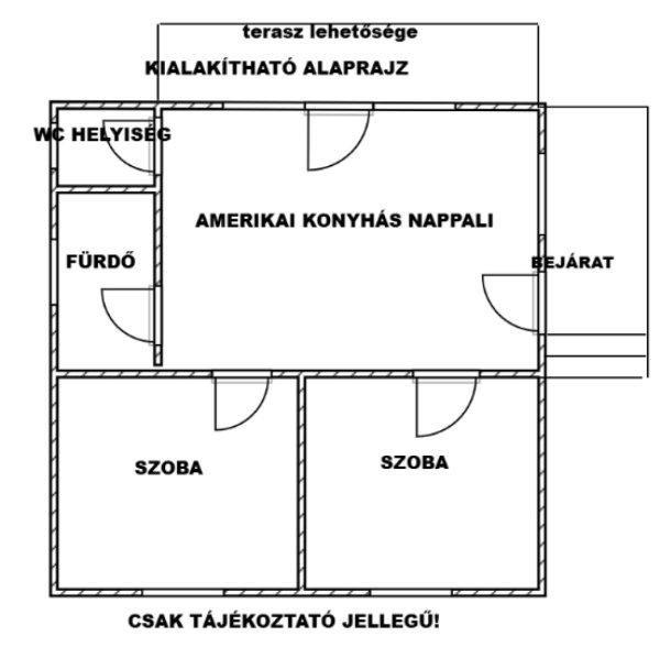 bontása után kialakítható egy modern, amerikai konyhás nappali, 2 szobás,