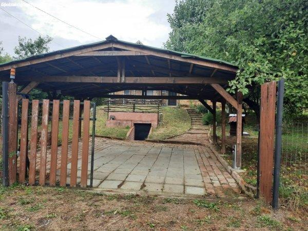 nagyságú fedett tároló van, mögötte egy kisebb pince található.A telken termő