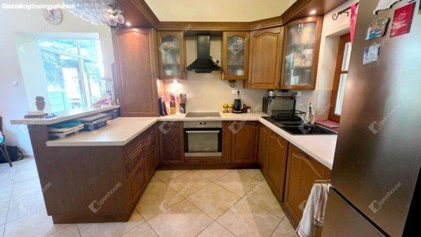 rendelkezésre áll- a földszinten egy 124 m2-es lakás konyhával, étkezővel,