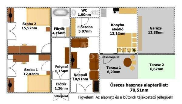 592nm,- a ház alapterülete: 114nm.Az épület hasznos alapterülete 70,51nm melyben