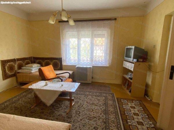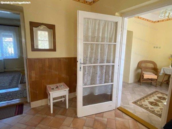 Családi házak rovaton belül a(z) "Szolnokon kádár kocka típusú jó állapotú két szobás családi " című hirdetést látja. (fent)