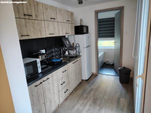 műanyag fehér nyílászárók.-Új fürdő- konyha járólapozva, csempézve.-A