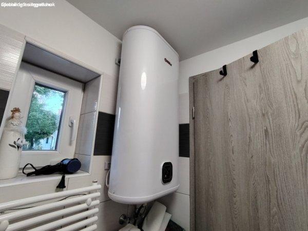 homlokzaton a nemesvakolat hőszigetelt.-A vizet új elektromos bojler