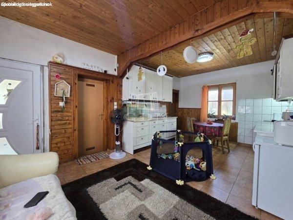 jellemzői:Lakótér: 75 m˛Telek méret: 2515 m˛Elrendezés: 2 szoba, étkezős konyha,