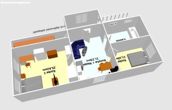 esztétikusan elrendezett. A nagyszoba méretéből adódóan (25,62nm) szükség