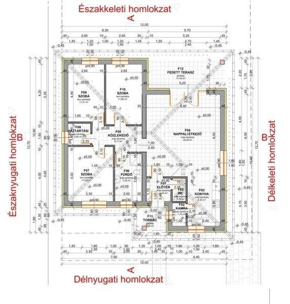 nappali-konyha-étkező, kamra, közlekedő, 3 szoba, fürdőszoba, vendégmosdó és