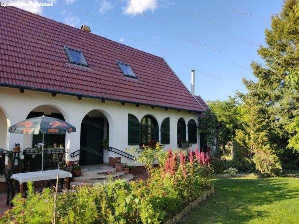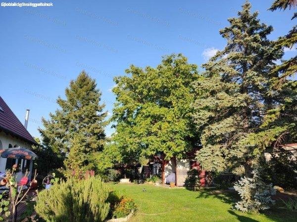megvásárolható, a gondozott, virágos-fás kert locsolása fúr kútról történik,a