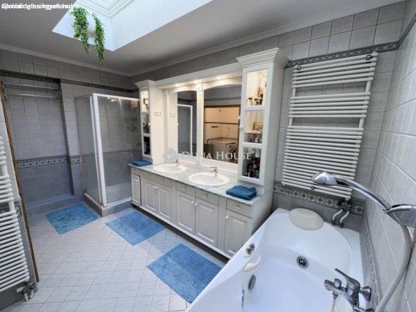 tusolós fürdőszobát- külön mosdó- fedett, kertre néző terasz- épített