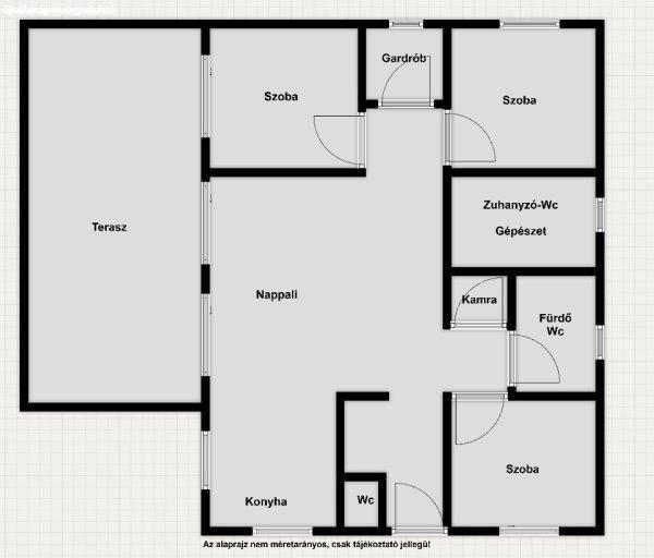 Előtér, nappali-konyha-étkező, kamra, 3 szoba, gardrób, közlekedő, fürdőszoba,