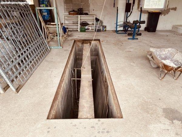 ytongból hozzáépített, épület, mely 50 m2-es és jelenleg szerelőaknás garázsként