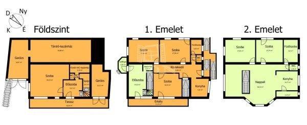 háromszintes, kétgenerációs, külön bejáratú, kétlakásos, téglaépítésű,