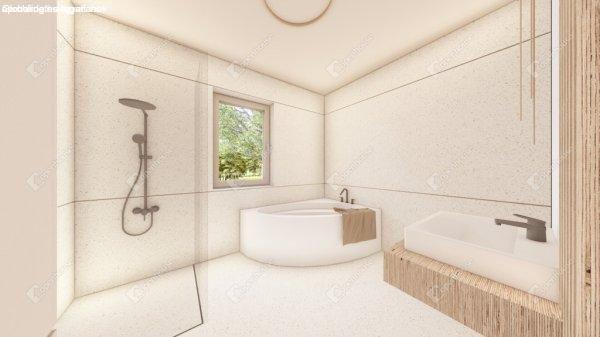 kiváló energetikai tulajdonságokat garantál.A fürdőszoba fürdőkáddal és külön