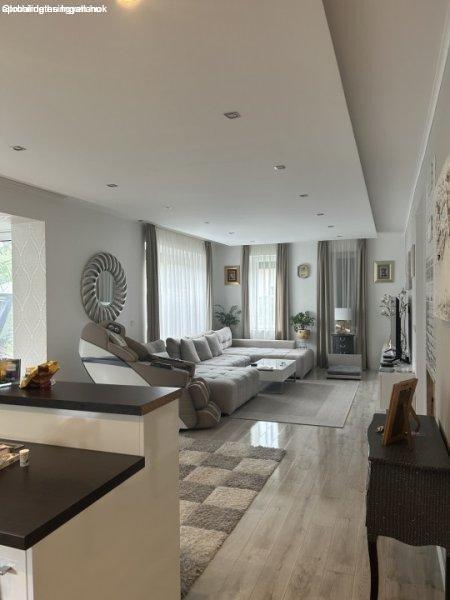 télikerttel klímával rendkívül komfortos lakótérrel udvarra nyíló télikerttel