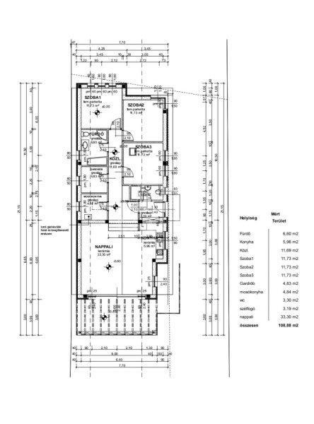 alapterülete: 110,68 nm.Terasz: 20 nm:Felosztása: amerikai konyhás nappali, 3