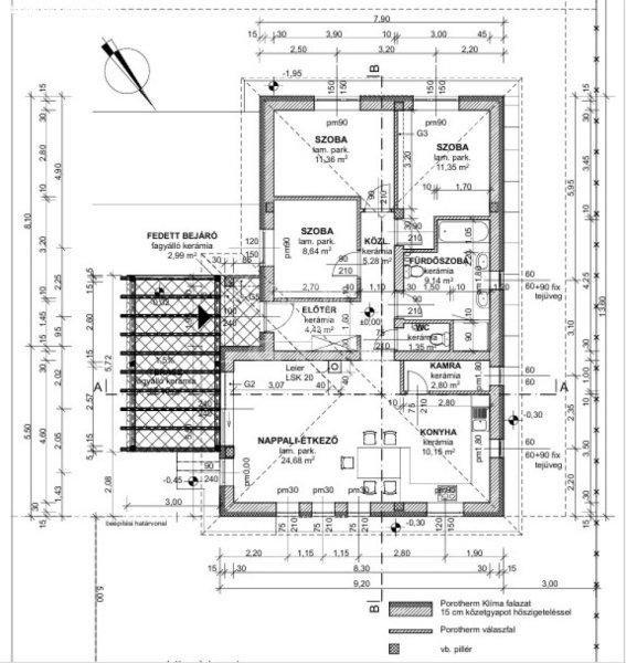 szigetelése 15cm, Bramac tetőcserép fedéssel.HŐSZIVATTYÚs fűtési rendszerrel,